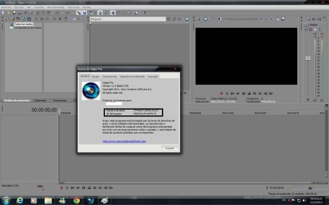10.- abren su sony vegas pro 11 y copian el serial pero le cambian las tres primeras cifras "1RH" por "1T4"