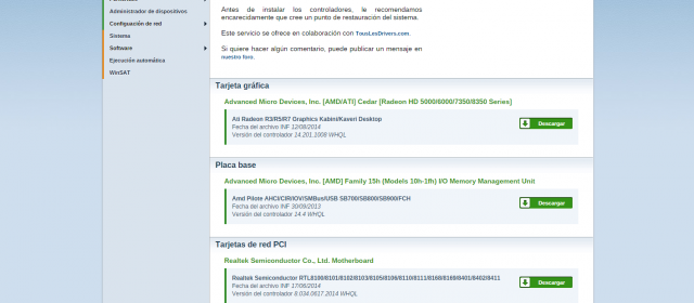 Como ven aqui, son los controladores pertinentes que debo actualizar. Los descargan y despues los ejecutan. Recuerden que con cada descarga que hagan analizenlo con su antivirus para que estén tranquilos. Es lo que les recomiendo, no implica que esta web esté infectada ni nada por el estilo. Vale decir que les puse estas capturas para demostrarles algunas cosas que este tutorial no aclara y para demostrarles de que pruebo lo que les muestro y que es viable para las personas novatas. Es una herramienta simple para solucionar inconvenientes.